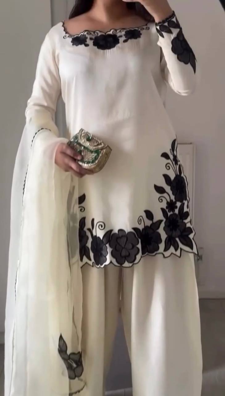White Stylish Palazzo Set with Kurti & Dupatta- RTC-6000
